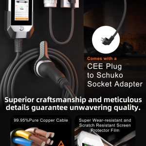 WiFi povezanost: Kontrolišite punjenje putem besplatne EV-Charger pametne aplikacije, koja vam omogućava praćenje napunjenosti, zakazivanje punjenja i upravljanje strujom na daljinu.